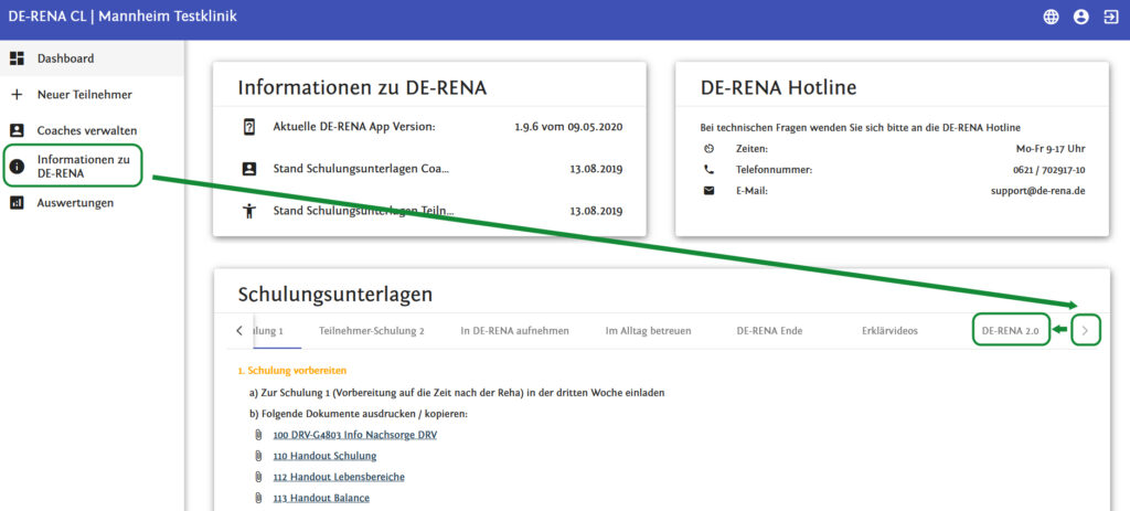 - In der Rubrik „Schulungsunterlagen“ finden Sie ganz rechts den Reiter „DE-RENA 2.0“.